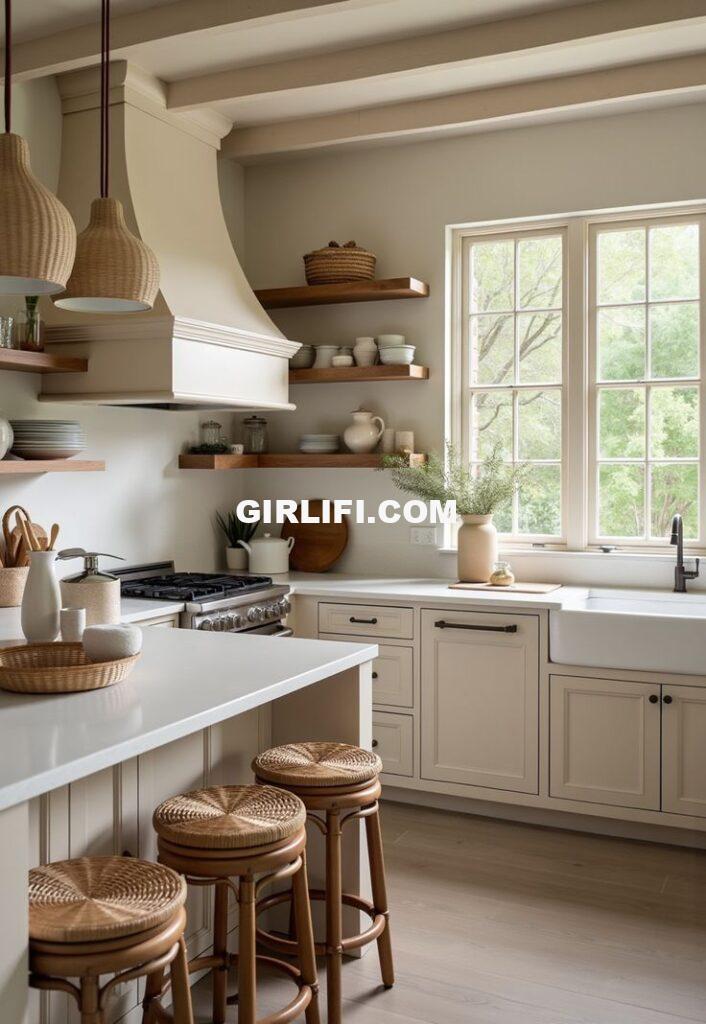 Warm beige is an excellent option if you’re searching for a warm but neutral hue. It’s a soft hue that gives your kitchen a warm, inviting feeling. Additionally, stronger elements like bright appliances or vivid artwork can be used with beige as a backdrop.
