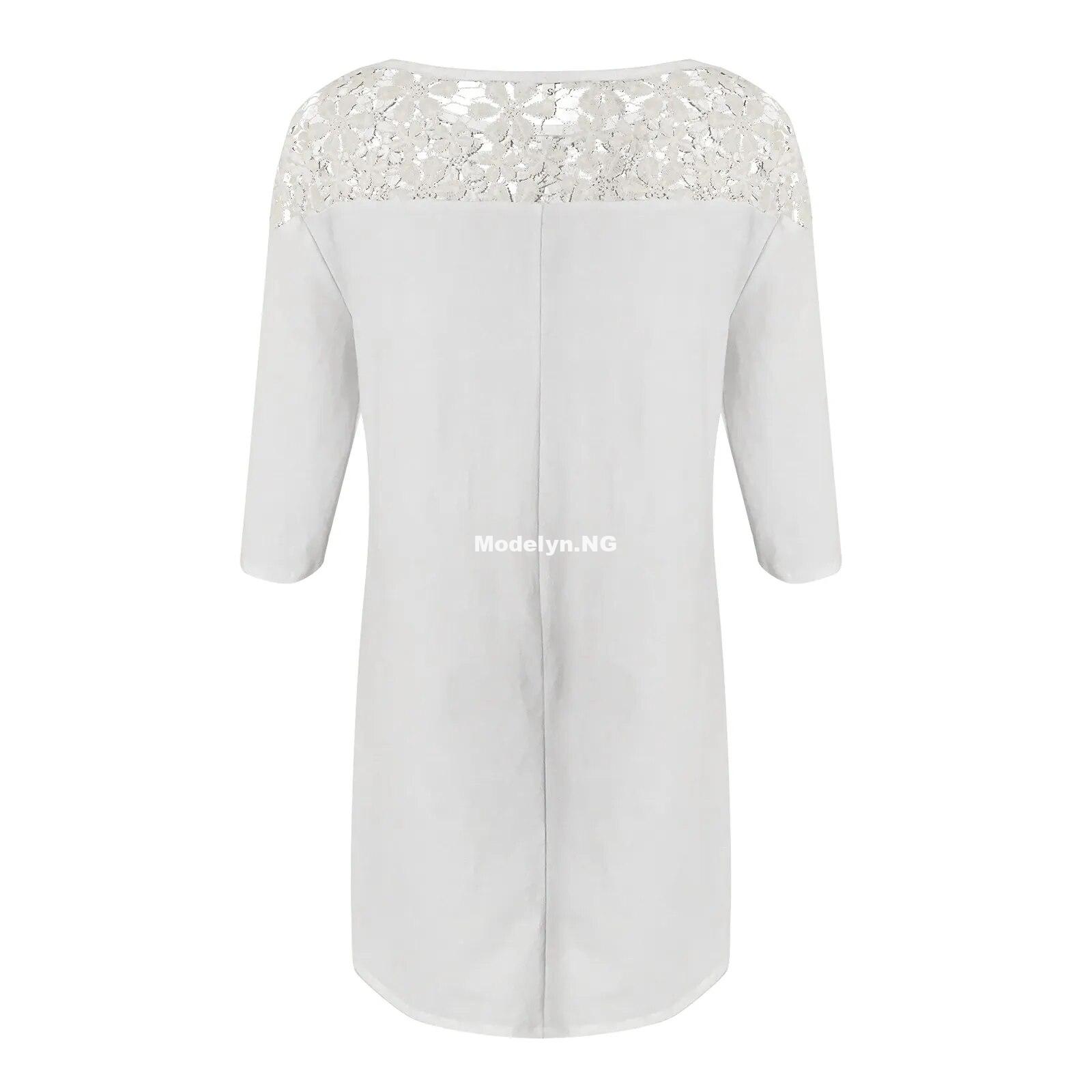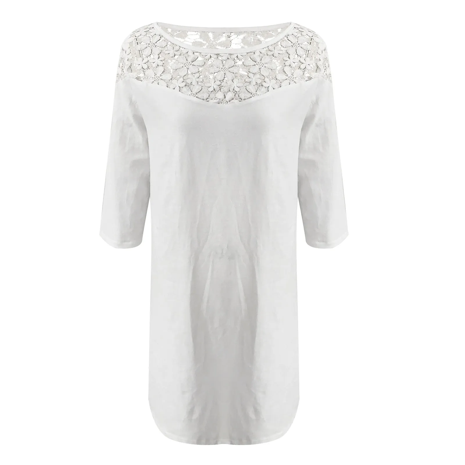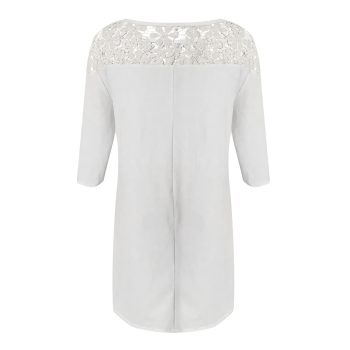 Women Summer Dress Middle Sleeve Lace Neck Casual Dress Mini Dress Boho Beach Loose Elegant MIdi Sundress